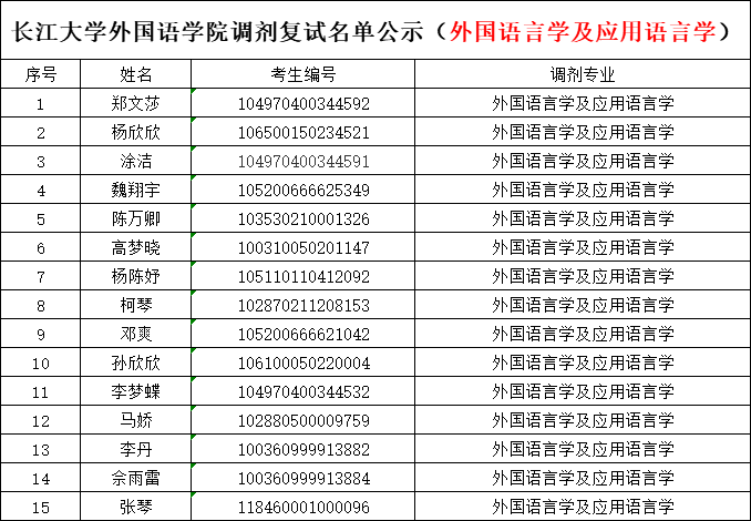 【调剂复试名单公示】开云(中国)调剂复试名单公示(外国语言学及应用语言学)