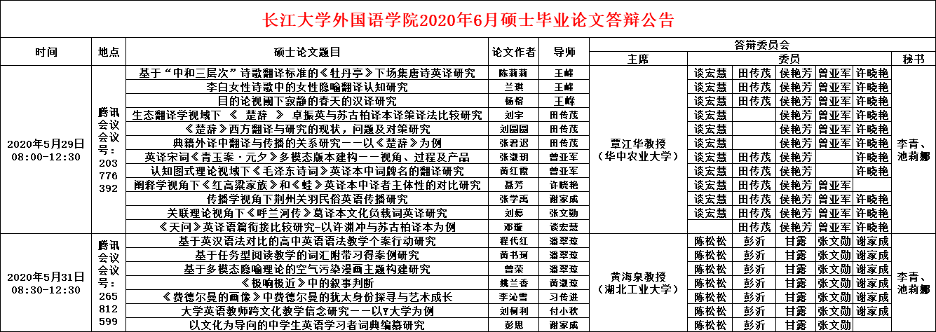 开云(中国)2020年6月硕士毕业论文答辩公告