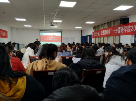 “开学伊始,如何确保教学工作井然有序?”副院长彭沂对新学期的日常教学工作、2019年CET-4考试通级目标及工作思路、毕业生学位论文指导工作、专业四级备考等工作进行了具体说明、详细安排。彭沂温馨提示各位教师细心核对开学第一课课表、教材、教案等,认真备好课,以饱满的精神站稳讲台,确保教学零事故。
