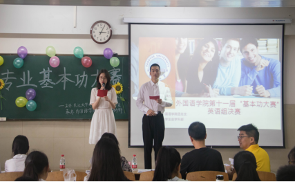 (文/蔡萱 周海韵 摄/黄家乐)为加强同学们对英语基本功的重视程度,营造英语学习氛围,5月18日下午3点,我院在12教402举行了第十一届英语基本功大赛英语组比赛。本次比赛由邱雨欣同学和鲁瀚章同学主持,并邀请夏永红老师、李兰老师、彭沂老师,田传茂老师担任评委。