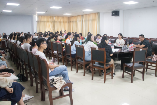 随后由来自荆州市江陵中学的余祖玉老师为同学们分享“实习那些事儿”,余老师从实习前的准备、课堂内观察点、课外学习点、班主任工作四个方面系统地给同学们进行了学校实习教育技能培训。她鼓励同学们“现在的教育需要老师作为一个火种去点燃学生的激情!”希望同学们能在实习中有所收获,不亵渎教师这一神圣的职业也不辜负自己。