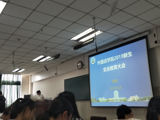 (摄/蔡萱 文/蔡萱9月26日下午三点半,我院于12教302室召开了2019新生安全教育大会。参与会议的有大一辅导员薛阳老师,辅导员助理耿传令老师以及全体2019级新生。本次会议由薛老师主持,分为心理测评、学生安全、重要工作说明三个方面。