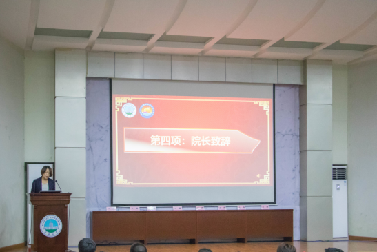 紧接着,田教授上台致辞,他代表全体教职工向新生们表达了热烈的欢迎,并讲述了我院的阳光文化,我院志愿者活动等丰富多彩的课外活动。他提出:“我院的阳光文化是充满爱心,恒心,信心的文化,不仅丰富了同学们的业余生活,让同学们有机会参与社会服务,同时也锻炼了同学们的实践能力,使同学们成为新时代的青年楷模。”接下来是谈院长发表讲话并宣布第14届阳光文化节开幕。她寄语19级新生们,希望每个人都要有长江的精气神,倾听时代的召唤,一路向前。“海纳百川,做一名胸怀宽广的长大人!润泽万物,做一名心怀仁慈的长大人!推陈出新,做一名创新、超越的长大人!百折不回,做一名坚韧不拔的长大人!”