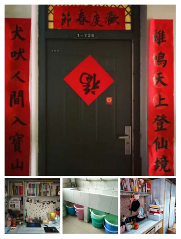 我们合理分工,团结协作,维护良好的宿舍环境。我们制定了卫生值日表,轮流清扫公共区域,自觉整理个人区域,使宿舍时刻保持干净、整洁。我们根据自己的喜好装饰书桌床铺,“和而不同”,统一却又各具特色,简洁而大方。我们将团结优秀从5#203延续到1#726。