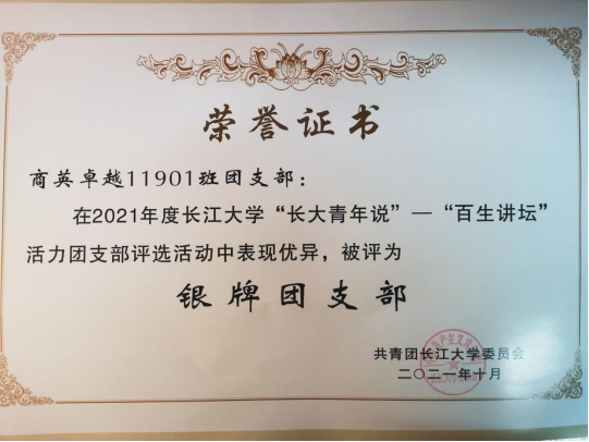 目前,该班全员为共青团员,共28名,其中有入党积极分子5名,党的发展对象5名,以及中共预备党员3名。全员完成递交入党申请书。2021年被评为校级“百盛讲坛”银牌团支部。多人被评为优秀共青团员。在团支书、团副支书和积极入党的同学们的带领下,全班在政治思想方面不滑坡、不脱轨。紧紧依靠党组织,坚定不移跟随党的领导脚步。在团支部建设中,结合团支部自身情况制订了一系列规章制度,使团支部的各项工作走向制度化、正规化、系统化,增强了团员意识。每月团会班级党员组织全班同学学习习近平总书记系列重要讲话精神,活动后认真撰写读书心得。同时,大家认真做好日常工作,积极落实团费收缴、推优、团员教育评议工作,主动关心同学思想动态。