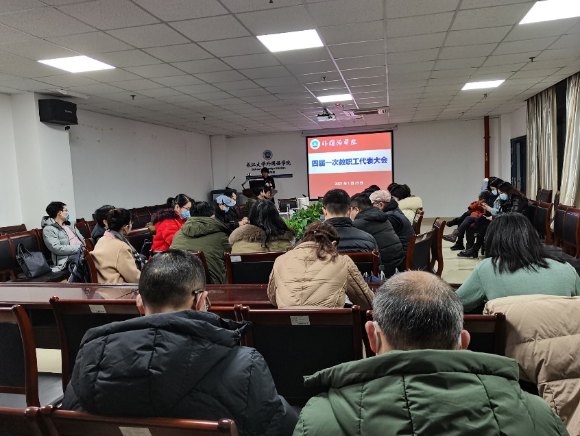 1月25日上午,学院召开四届一次教代会,根据疫情防控要求,为防止聚集,部分代表在文科楼712会议室参会,部分代表通过网络参加视频会议。会议由院长谈宏慧主持。