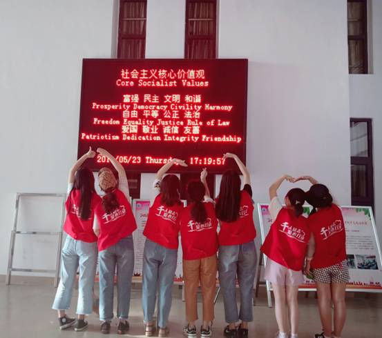 从她们身上,看到了新一代青年的满满活力,展现的是我大外院的志愿服务精神:“奉献、友爱、互助、进步”。直至下午五点二十,整栋文科大楼清理完毕,志愿者们汇合到七楼外院学生工作办公室并合影留念,我院第一次“千人励志爱心行动”圆满结束。