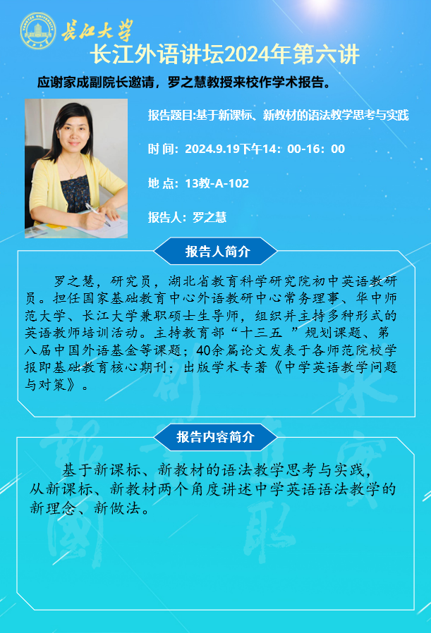 长江外语讲坛2024年第六讲:基于新课标、新教材的语法教学思考与实践
