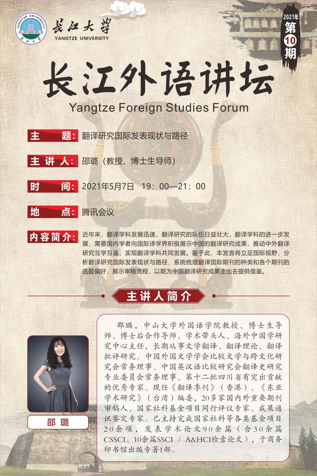 长江外语讲坛(2021年第十讲):翻译研究国际发表现状与路径
