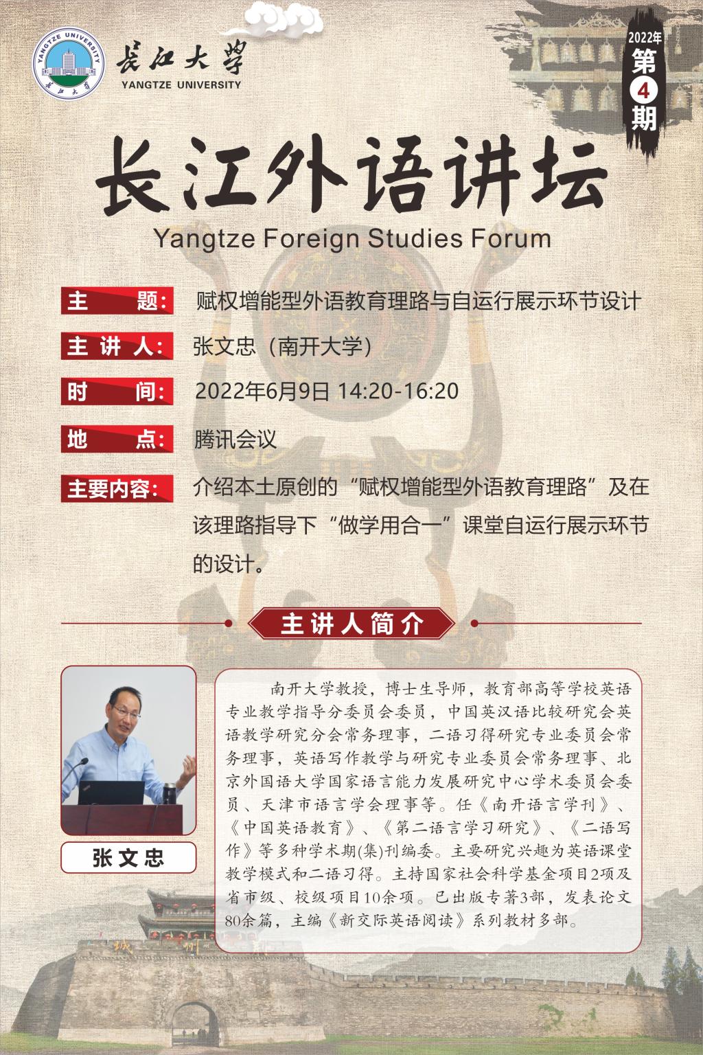 长江外语讲坛(2022年第四讲)赋权增能型外语教育理路与自运行展示环节设计