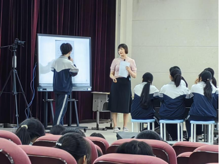 (通讯员 马欣悦)5月24日,江陵中学在学术报告厅成功举办了“五新121”优秀课例展示活动之英语组专场。本次活动由周蕾老师主讲,教材为人教版选择性必修第四册,主题为《Unit 1 Science Fiction--Continuation Writing》,时长40分钟。江陵中学英语教研组长陈应彬主持了此次活动,我院英语(师范)专业2021级和2023级的五名学生代表在马天雨老师的带领下参与观摩交流。