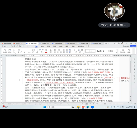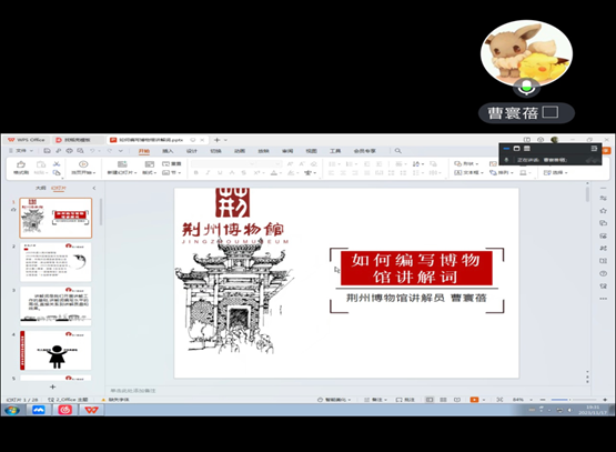 晚上7点,慕名而来的同学们便陆陆续续进入腾讯会议。在初次参观完荆州市博物馆后,同学们已经自行选择一件文物进行讲解词撰写了,她们或多或少都遇到了困难,于是只待七点半活动开始,听荆州市博物馆的讲解员们来“指点迷津”。